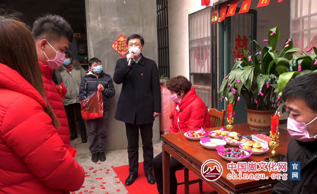 桃墟镇政府宋强镇长特地赶到现场送上红包和祝福,对周家疫情当前简办婚事的行为表示高度赞扬,号召全镇广大群众向其学习,积极响应政府号召,支持疫情防控,为打赢疫情防控攻坚战贡献一份力。