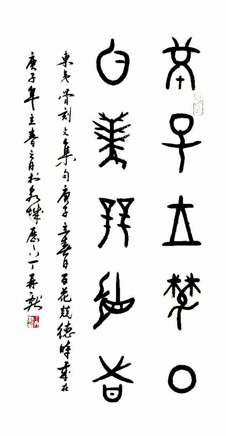 崮文化网 立春,为“二十四节气”之首,是干支历的岁始,乃万物之所成终而所成始,代表万物起始、一切更生之义。2020年2月4日,是庚子年正月十一,正值立春之日,也是全国抗击新型冠状病毒感染肺炎取得阶段性成果之时。山东省旅游行业协会副会长、山东原古东夷文化与骨刻文字研究中心主任、著名东夷文化学者、诗人、书法家丁再献先生即兴创作了五言绝句一首和东夷骨刻文集联以记!