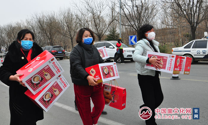 女企业家们来到联城镇王家村疫情防控检查站,为坚守在防控一线的工作人员送去牛奶、面包、饼干等物资。她们用爱心和奉献,为坚守在抗击疫情一线的工作人员送上暖心支持,展示了新时代巾帼风采。(公晓霞)