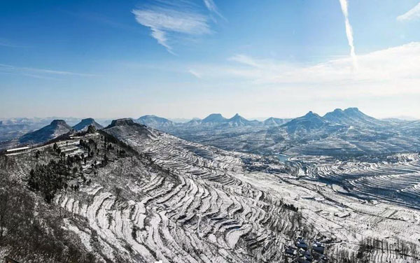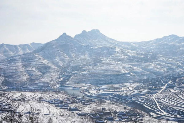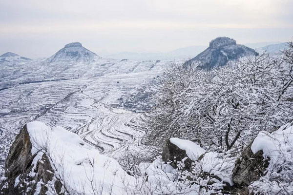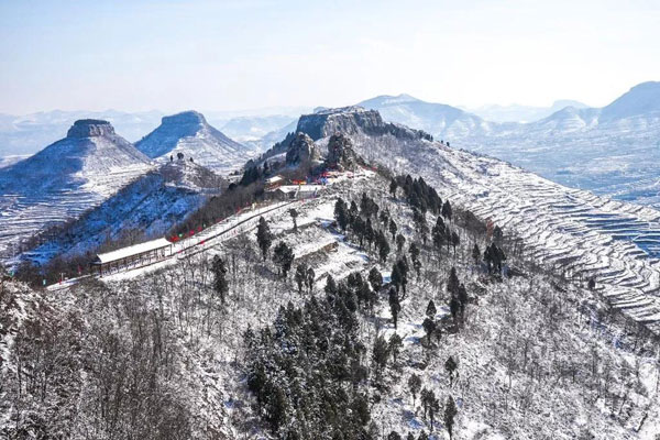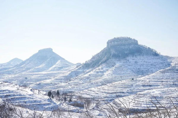 崮文化网讯 立春刚过,气温骤降,一场瑞雪普降崮乡,大地银装素裹,沂蒙七十二崮都戴上了“白口罩”。群崮簇集地——蒙阴县岱崮地貌景区更是被白雪装扮的分外妖娆。