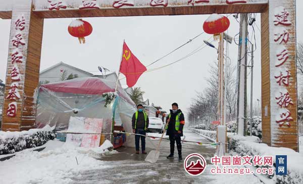 崮文化网讯 美丽的不只是雪景,还有雪天里的战“疫”工作者。2月14日至15日一场大雪,丝毫没有阻挡住孟良崮下蒙阴县垛庄镇广大党员干部群众的战“疫”脚步和昂扬斗志,他们没有一个请假,没有一个掉队,在疫情防控一线扫除冰雪,坚守岗位,一时一刻也不放松,一丝一毫也不懈怠地守护着一个村、一座镇、一个个家……成为了冰天雪地里最美的风景。(匡秀福)