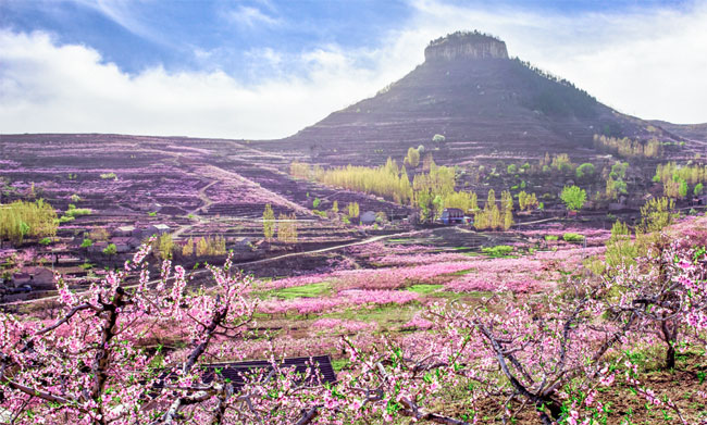 春暖花开,风和日丽,正是踏青赏花好时节,在崮乡蒙阴,65万亩的桃花此时争相怒放,成片的桃花流连于黛青、碧绿的山山水水间。约上三五好友,自驾到山东省蒙阴县岱崮镇岱崮地貌景区,享受春光的美意,欣赏阡陌桃花的同时,更能邂逅号称中国第五大地貌——“岱崮地貌”连绵的群崮,感受岱崮地貌的壮美风情!
