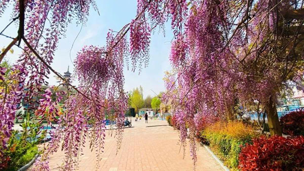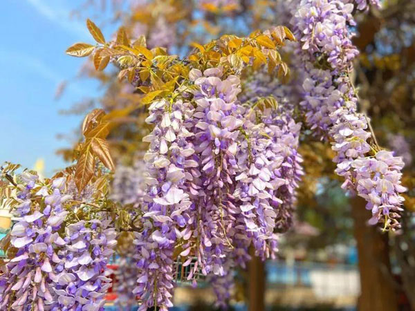 4月初至,刘洪文化园的紫藤已开的烂漫十足