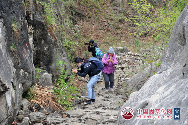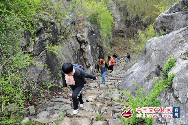 通往崮顶的山路蜿蜒曲折,灌木丛生,大家边走边问,当地老乡热情指引大家前行。