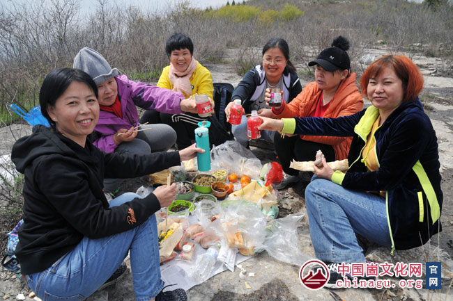 崮顶平坦,岩石洁净如洗,大家席地围坐,共进午餐,畅谈登崮的体验,享受着置身大自然的快乐。