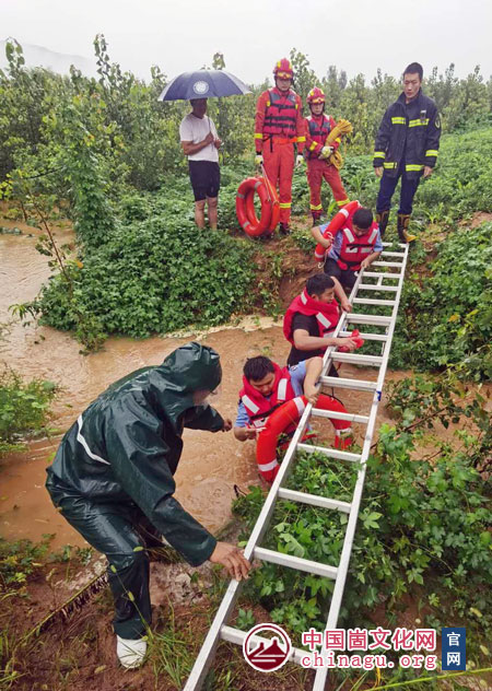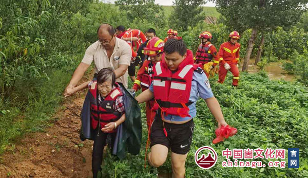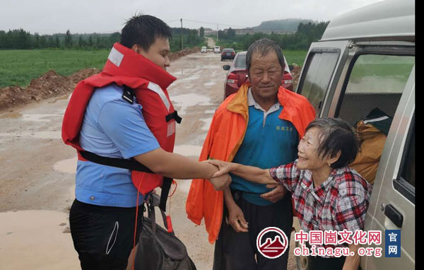 崮文化网讯 8月7日7时14分,云蒙湖生态区派出所接到县局110指令,云蒙湖生态区管委会圈里村村民夏玉祥与其妻子,被洪水围困在村南桃园内的家中。