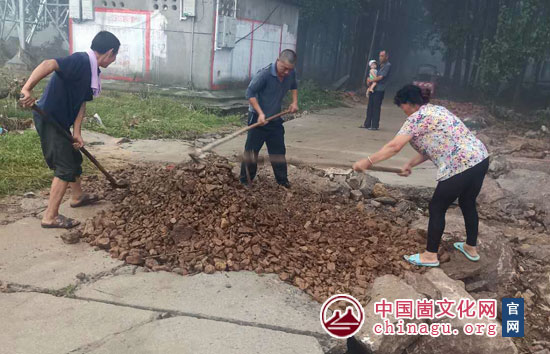 崮文化网讯 近日,强降雨导致的进出村道路水毁严重的问题,山东省蒙阴县桃墟镇西陡山村不等不靠,村书记季永文第一时间组织发动村党员、志愿者开展灾后自救,对村内多处损毁的道路进行铺垫修复,恢复了道路通行,解除了群众后顾之忧,确保受灾群众早日恢复生产,尽快度过难关。