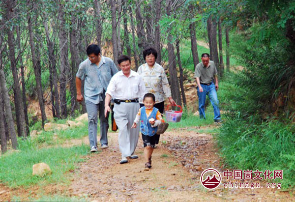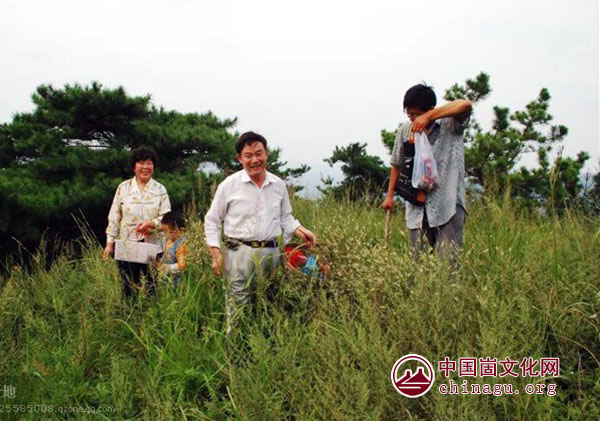 2011年8月21日,我们崮文化研究会部分会员在丁军国会长组织下,来到蒙阴县野店镇烟庄《六姐妹纪念馆》参观,然后爬上岱崮镇最北边的皮虎楼山,感受大自然,并把松菇捡。(刘发厚)