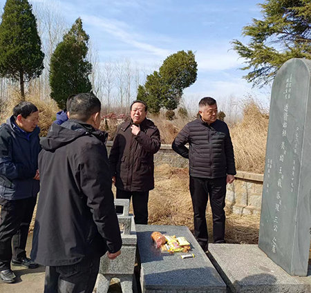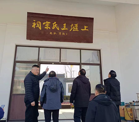 2024年2月15日(农历正月初六),中国崮文化网十大网络作家、副总编王相理与同宗王相贞、王吉文一行三人驾车前往江苏省赣榆县上堰王村到王氏祖祠祭拜先祖。经青山埠王吉文与上堰王氏宗亲会长王节善联系后,在祖祠管理人员陪同下进入祠堂瞻仰了先祖遗像,以及在四平战役中牺牲的家族子弟王西兰烈士(牺牲时任排长)的雕像,听节善会长讲述了自宋朝以来上堰王700余年的发展历史,学习了王氏家训铭文,接受了一次家庭传统文化教育和红色文化教育。