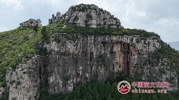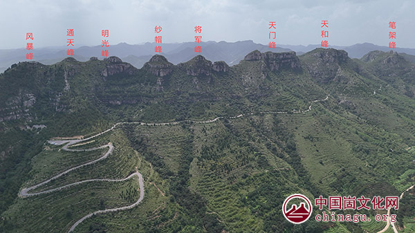 将军峰西为天门峰,又称南天峰、南天门。《花园河村志》记载:“在陡峭如削的崖壁上,有一处凹形石壁,呈立式长方形,酷似石门,村民习称‘南天门’。”
