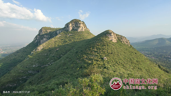 今年5月3日和31日,先后攀登了八岐山北面的南太平崮、北太平崮、东楼顶、西楼顶诸崮。南太平崮海拔略高于八岐山,站在南太平崮顶,南望1公里处的八岐山峰,似如八位将军,因而人称南太平崮为“点将台”。“下如九叠屏风,上则八峰骈秀,如森戟排空”的八岐山一下子吸引了我的目光,当时就决定一定要去八岐山!8月11日,终于成行。有网友说登八岐山有4条线路,我是开车穿过花园河村,出村后转西南,沿弓形环山路连续拐了十几个弯,将车停在了通天峰北侧的一个小停车场(观景台)内。