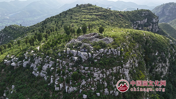 天和峰东山头一处院落,院内有一大三小4间房屋,主建筑石屋长4.4米,宽2.2米,厚0.8米,残高约1.5米。不远处的西南侧山头还有一处布局更加考究的院落,主房四周有宽约1.5米的夹道。这两处石砌院落的建筑时间、用途不详,看样子近期仍有人用来圈羊。《临朐村镇志略·五井卷》(2010)记载:“花园河村太平崮有南北两峰,相距里余,俗称南太平崮、北太平崮……据民国《临朐续志》记载:‘崮顶有明末吏部文选司高郁文公避乱处,名高家宅子’,今无迹。乱世附近村民多避祸于此,以求太平,故名太平崮。”“石峪村东北有一山寨,曰落星寨。据传系天井、石峪两村为躲避‘南匪’而建。1942年,汉奸‘小翟孩’部盘踞此寨,经常下山抢粮劫物,抓人拉伕,修炮楼,筑围墙,给百姓带来巨大灾难。”“天井村,1933年起,为防匪患,用3年在村周建起围墙,全用大石块砌成,设东、西、南、北4门,围墙上有岗亭,村民轮流把守。”八岐山诸峰中,只有纱帽峰、天和峰崮顶有山寨遗迹,且面积较小,估计仅为放哨之用,不可能是附近群众用来躲匪的,土匪来了,村民或是在村内建起围墙用以防卫,或是上山躲到附近的落星寨、阁老崮寨、南太平崮寨、北太平崮寨等面积较大的崮顶山寨内。