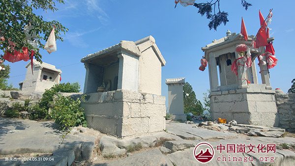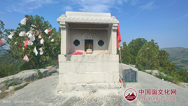 逄山祠:药王庙东去8米左右,为逄山祠,逄山祠北去十余米便是奎星楼。逄山祠座东朝西,与其他三庙同一构造,南北宽1.6米,东西长1.8米,高2.6米。门上横额“逄山祠”,对联“威灵昭冥漠,云雨润苍生”。