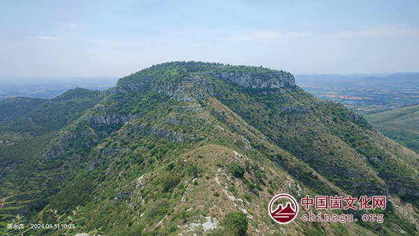 北太平崮古寨西门处非常陡险,小心翼翼地下到崮底,随即攀爬东楼顶。东楼顶、西楼顶位于临朐县五井镇政府驻地西北6公里,寨子崮村西南方向,海拔均为552米,面积均约0.5平方公里。两山略呈东南至西北走向,东、西相隔约500米,宛若石门对峙。东楼顶与西楼顶两侧悬崖峭壁,顶部平坦,自然形成不同层次,独立高耸,四层崮体远望如楼,土人称曰“东楼顶”“西楼顶”,故1991年版《临朐县志》说两山命名原因为“象形”。西楼顶近年出现仰卧伟人像,自北侧远处瞻望,非常逼真,这属于大自然结晶,也顺应了盛世天意。两山均具崮貌特征,可入“岱崮地貌”之列。西楼顶与平安东山间有小路可从北侧下山到水泥路上。