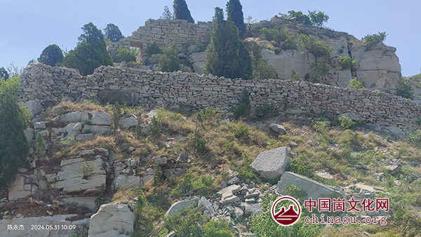 崮顶有数个碾臼,东南部有人工凿成的石井,直径2.5米,深达数米。下雨时存水备用,俗称“天池”。再向东有水窖房一座,传说是逄伯陵、唐赛儿、黄巢、洪秀全等兵寨饮水处,解放前有汉奸炮兵连居住,后来黄皮伪军把原来的水窖用水泥重抹防漏,到现在灰迹尚存。
