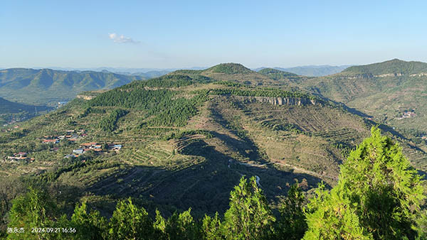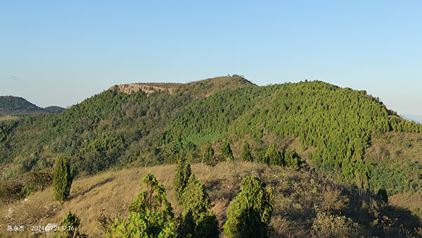沂源县牛郎织女景区南面4公里处,自葫芦顶子、三角山东峰,经高家顶、鹰咀崮,直到娘娘顶,形成一条山岭,以上诸山崮,可视为同一条山岭的一系列山头。高家顶南面毗邻鹰咀崮,为该山岭中间的两个山头,均具备崮貌特征。2024年9月21日中午,先后穿越道坐崮、三角山后,下午继续穿越高家顶、鹰咀崮。
