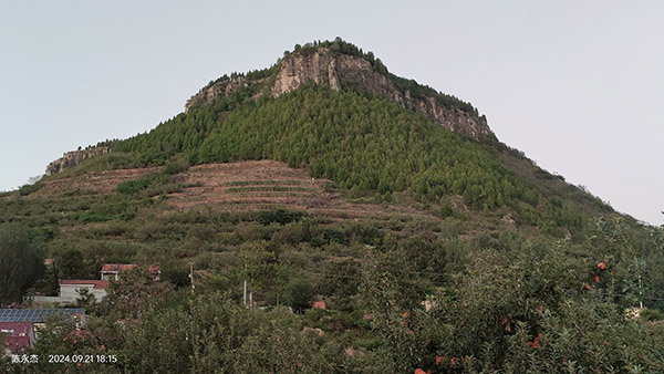 2024年9月21日,连续穿越道坐崮、三角山、高家顶、鹰咀崮四崮后,已是下午四点半,当天的攀登计划已顺利完成。鹰咀崮南面是娘娘顶,沂源县崮研究专家谭立忠教授实地考察后认为,娘娘顶实际是一座典型的崮,非常符合岱崮地貌特点。站在鹰咀崮顶,望着近在咫尺的娘娘顶,不仅心向往之。虽天色近晚,下了鹰咀崮,脚步还是不自觉地朝娘娘顶方向走去。