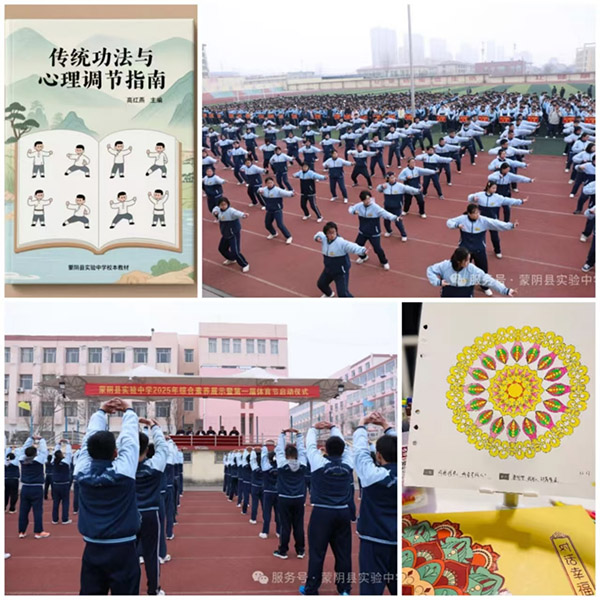 崮文化网讯 近日,蒙阴县实验中学在“五育并举,艺体先行”教学改革实验中取得重大突破——其课题《传统文化融合艺体课堂教学对中学生心理健康疗愈作用的研究与策略》不仅构建了独具特色的心理健康干预体系,更以显著成效为高中教育改革提供了可复制的实践样本。该研究通过将八段锦、传统纹样绘画等传统文化元素深度融入艺体课程,成功破解了高中生心理健康干预难题,相关成果获多家媒体关注,并在省内多所学校推广应用。
