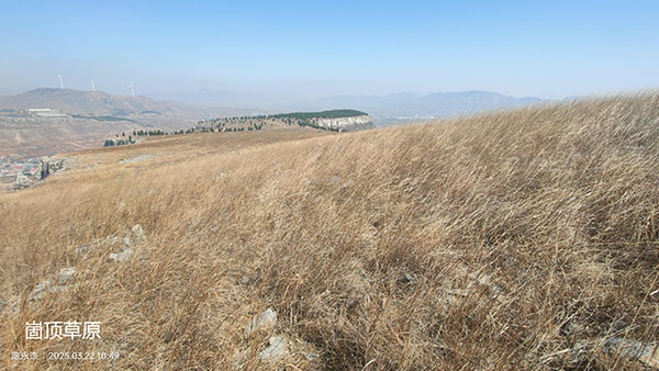 我开车至土山后村西南路口时,一位自称江苏沛县户外领队的人伸手拦住我:“不好意思,请稍等,一会儿有车队下来。”我抬头一看,高大的苏家崮就在眼前,一条水泥小路通往崮顶,路崎岖又窄,会车困难,一二百米处有一溜私家车队正缓缓驶来,我立即靠边停车等待。和领队交谈中得知,他们是江苏沛县的,今天专程来参观苏家崮和九间棚,他们车队有七八辆车,30多人。他特意说崮顶草原挺漂亮,最好是四月底来,五月份就热了。看样子他经常组队来苏家崮。