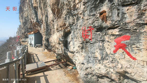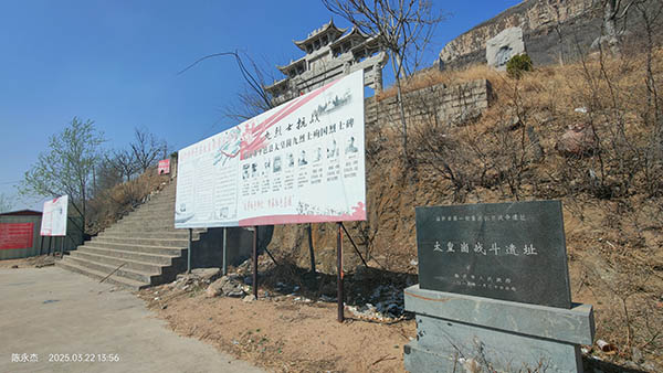 关于太皇崮的称呼啰嗦了半天,下面该介绍一下太皇崮景区及我的游览感受了。探访时间是2025年3月22日,独自一人。有两条路线可上:一条是从太皇崮村转西南至景区入口石牌坊处,沿台阶步行登崮。另一条是从太皇崮村向西,沿水泥路开车直接到第一层平台。