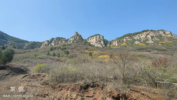 历城南部山区西北部,卧龙山水库以东,仲宫街道东郭而庄村南800米处,有一山头外形奇特,酷似和尚戴的帽子,因而得名和尚帽。和尚帽为历史名山太甲山(又称康王山)诸多山峰之一,属典型岱崮地貌,海拔约460米。2025年4月3日中午,在登顶太甲山主峰康王顶后,顺道攀登了与之一麓相连的和尚帽山。