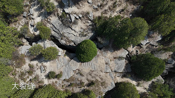 从太甲山主峰康王顶,往北先下山再上坡,是一座不知名字的崮形山,翻过这座崮形山,前方就是和尚帽山了。和尚帽西侧有一道西北东南方向大裂谷,宽不足1米,深不可测,扔一块石头下去,三四秒后才听到石头落底的声音,有水声,估计有三四十米深。沿途还发现多个洞穴,口小,深不见底,这次志在访崮,而非探洞,就没细究,拍照后离开。