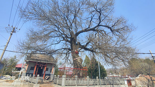 七圣堂位于村内小广场北侧,门前墙内嵌有两块刻碑,一块是康熙四十二年的《重修七圣庙记》,另一块是清嘉庆二十二年的《重修七圣堂庙记》。侧墙上还有一块民国六年立的刻碑。七圣堂创建时间不详,有人推测是明朝时期。清咸丰七年、民国六年、2011年重修。据东墙2011年《重修七圣堂碑记》,这次重修增设铺装庙台四周花岗岩护栏、台阶,彩砖铺地。一棵两人合围粗的古槐耸立在庙台中间,据树身保护牌可知,树龄约280年。村内还有两棵古槐。