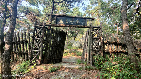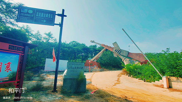 从标识牌上可看出,这里曾开发为孟良崮主峰景区,南面与孟良崮旅游区毗邻,两景区上山水泥路南北相隔最近处仅二十来米。因大崮顶有击毙张灵甫处,蒙阴开发为孟良崮旅游区,而孟良崮属沂南,辖属不同,两县各自为战,均进行旅游开发。可因1956年的一次跨县域行政区划调整,造成如今孟良崮旅游区没有孟良崮,或是说孟良崮不在孟良崮旅游区的尴尬情况。