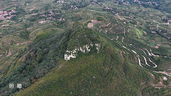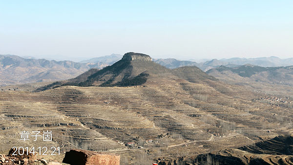 在崮顶林灌茂密、藤蔓杂缠的情况下,艰难地转悠了一圈,回到山门处。章子崮的总体概貌,张永伟、吕晓亮主编的《地貌新宠——崮》一书有详细介绍:“崮顶呈三角形,四面峭壁,如刀削斧凿。中寒武统石灰岩层厚25~30米,由上小下大、上薄下厚的两层灰岩层构成。上层灰岩厚度3~4米,长度为47米,宽度介于10~25米,周长176米,崮顶面积1400平方米;下层灰岩厚度22~24米,长106米,宽18~65米,周长为370米,面积约为4400平方米。”结合这次实地采风,我认为章子崮是一座标准的崮。“崮”,《辞源(修订本)》(商务印书馆,1979)解释为“四面陡峭,顶上较平的山”,如今网络搜索到的解释,基本与之相同。上下若一的章子崮,状耸兀立,其形状,正符合上述解释,所以说,章子崮是处于岱崮地貌核心区域内的一座既标准又标致的崮。