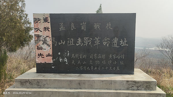 从马头往北行约200米,经过一处山坳口,即到泰山行宫。行宫左前方小路侧,立有“孟良崮战役天马山阻击战革命遗址”文保碑。该碑及行宫内几块古碑,还有清代康熙、宣统两版《蒙阴县志》,均称该崮名为“天马山”,如清康熙《蒙阴县志》:“天马山,在城东三十五里,其形如天马,故云。”“城东三十五里”的记载,从方向看,说的好像是今沂南县岸堤镇的马子山,但从距离看,说的又好像是蒙阴县垛庄镇的马头崮。沂南马子山位于今蒙阴县城东四十五里,马头崮位于今蒙阴县城东南三十五里。但《蒙阴县地名志》(1983)、李立刚《沂蒙崮》等均认为清《蒙阴县志》记载的“天马山”是马头崮,这是对的。只是清《蒙阴县志》关于天马山的方位记载有误:“城东三十五里”应为“城东南三十五里”。马子山也是一座崮,董梁高速从山体南端底部穿过,称“天马山隧道”。未见马子山有“天马山”一名的记载,该处隧道称“天马山隧道”,可能是因《蒙阴县志》“天马山,在城东三十五里”这一错误记载所致。我认为还是称“马子山隧道”,既合乎地名又接地气。