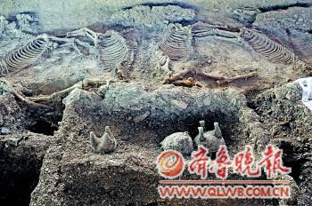 目前,崮顶春秋墓中发现至少5具陪葬者的遗骸。郑同修介绍,陪葬和殉葬意思完全不同,前者埋葬的是墓主的亲近者。比如2005年省考古所曾发掘一座战国墓葬,经骨龄测量,竟有43名年龄在18-25岁的年轻女性为其陪葬。陪葬者有自己的棺木,甚至有随葬品。而殉人则是像殉羊、殉狗一样杀人随葬。崮顶春秋墓葬有出土殉人的可能性。