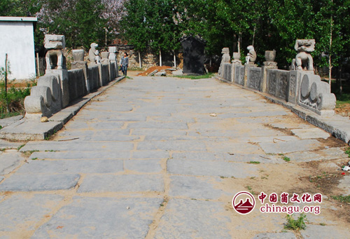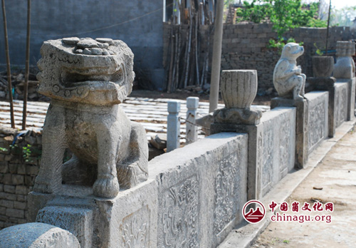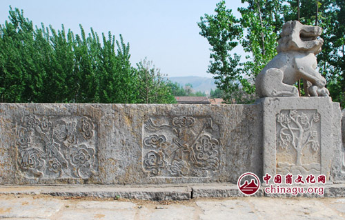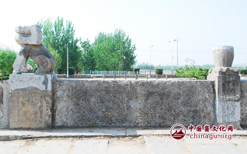 桥面两边各立栏柱五根,间隔栏板四块,上面均饰有石刻,采用浅浮雕刻法。