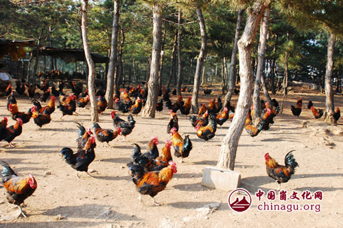 散养松林间采食松子、草籽、昆虫的本地鸡、土地鸡