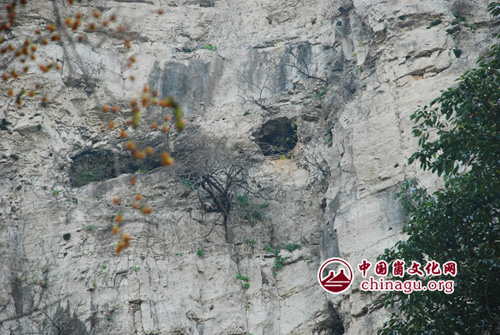 瞭阳崮崖壁上的圆形洞口 丁军国摄