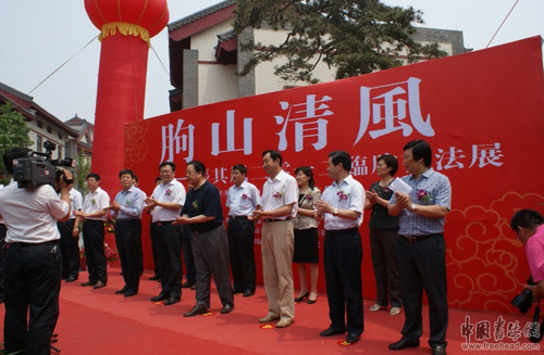 6月2日,由南京航空航天大学、中共潍坊市委宣传部、临朐县人民政府主办,中共临朐县委宣传部、临朐县文广新局承办的“朐山清风——张其凤书法展”开幕式,在山清水秀的临朐龙韵文化城隆重举行。山东省政府秘书长蒿峰,中国书法家协会副主席张业法,中国海洋航空集团总经理、党委书记赵祉胜,山东省出版集团总经理张瑞云等以及省、市、县领导出席开幕式并剪彩。中共临朐县委书记、县人大常委会主任顾建华,中共潍坊市委宣传部常务副部长丁汉邦,山东省出版集团总经理张瑞云,中国书协副主席张业法分别在开幕式上致辞。开展仪式由展览的主办方之一——临朐县人民政府副县长赵同祥主持。来自南京、济南、临沂、淮安、潍坊等全国各地书画界、收藏界的朋友,省、市、县新闻界的朋友,张其峰先生的好友、学生,以及社会各界人士共约500余人出席开幕式。