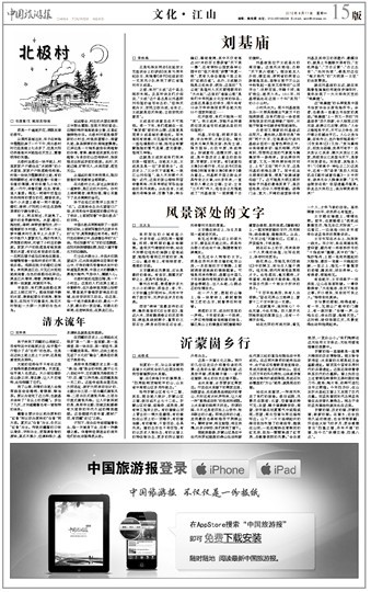 6月11日,由蒙阴县崮文化研究会会员尚修成撰写的旅游散文《沂蒙崮乡行》在中国旅游报文化·江山栏目发表。