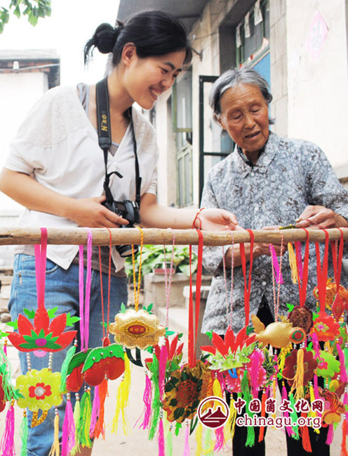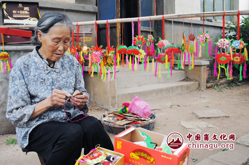 端午节来临之际,在蒙阴县坦埠镇一些老年人拿起针线,绣起了荷包,增添了浓厚的节日气氛。