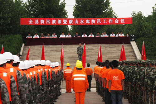 跋山水库是我县的一座大型水库,担负着防洪、供水和农业灌溉等任务,为提高跋山水库应急抢险队伍的实战能力和应对异常天气条件下的处置能力,跋山水库举行防汛抢险队伍集结演练。在下午四时左右,防汛总指挥赵常胜下达按照预案迅速集结抗洪抢险队伍的指令,随着集结警报的拉响,县人武部防汛抢险队、跋山水库管理处防汛常备抢险队、县卫生局防汛抢险救护队、县水利局防汛抢险专家队、县供电公司电力保障抢险队等14支共360人的跋山水库防汛抢险队伍在半小时内集结完毕,整个过程快速有序,达到了预期的目的。通过集结演练,进一步提高了防汛抢险指挥决策水平和突发险情应急处置能力,宣传了防汛抗灾知识,锻炼了抢险队伍,增强了广大干部群众的防汛抗灾意识。