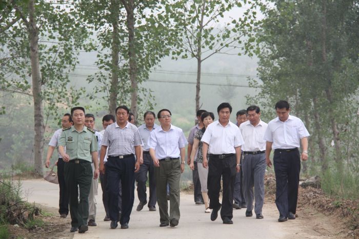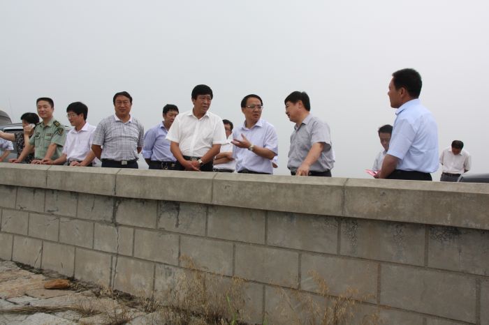 7月9日,县委书记、县人大常委会主任朱开国视察全县防汛工作。县领导李高学陪同。