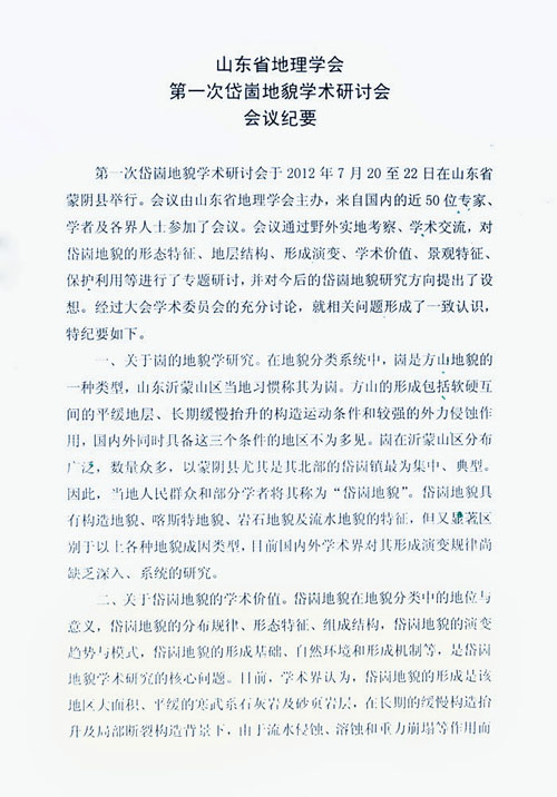 山东省地理学会第一次岱崮地貌学术研讨会会议纪要