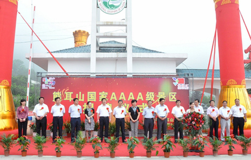 8月18日上午,熊耳山景区彩球高挂,鼓乐齐鸣。熊耳山国家AAAA级旅游景区揭牌仪式在景区广场举行。山东省旅游局副局长于凤贵,枣庄市政府副市长霍媛媛,山亭区委书记、区人大常委会主任王常胜,区委副书记、区政府区长李春英,省旅游规划设计研究院院长陈国忠,省旅游局规划发展处副处长张百科,省旅游局机关服务中心副主任张国栋,市旅服委主任刘中波,区委常委、宣传部长王洪燕,区委常委、区政府副区长孙海鹏,区委常委、办公室主任、群工部部长刘巨,区政府办公室主任宋振华,北庄镇党委书记孙中川,山东华邦集团党委委员、纪委书记闫绍礼,区旅服局局长李永平,熊耳山景区管委会主任郝峰出席参加揭牌仪式。