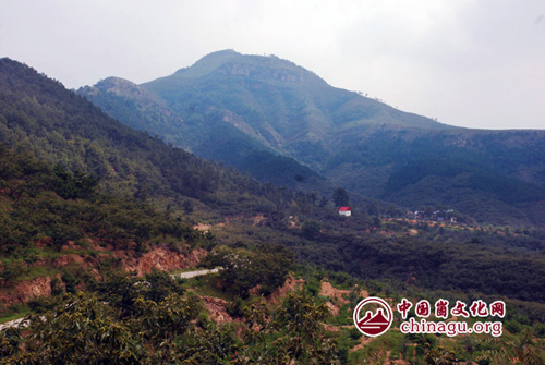 车子继续前行,不一会儿就来到了一片葱绿的果园前。果园的东边有几座古朴典雅的亭子,果园的主人在路的南侧,果园的边上,新盖了三层的灰瓦白墙的别墅,亦是古朴别致、清丽典雅。在热情的主人的指点下,我们徒步向阁老崮进发。
