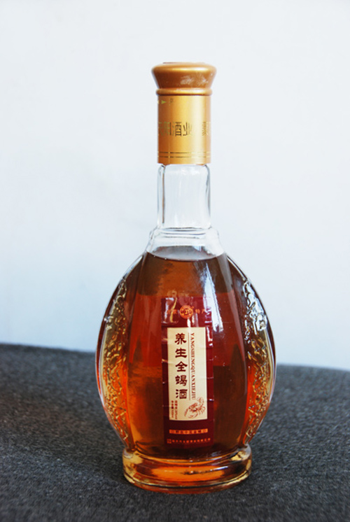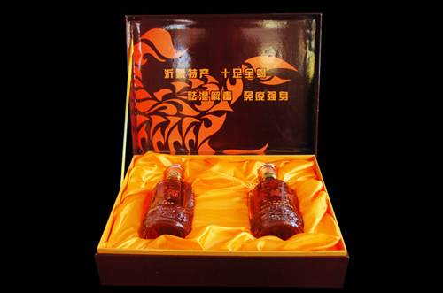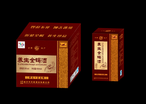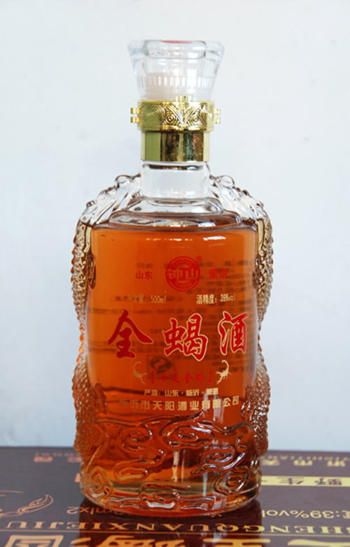 天阳酒业有限公司根据全蝎的功效,用蒙山山泉水和五粮工艺高标准生产条件,精心酿造了“钟山”全蝎酒。
