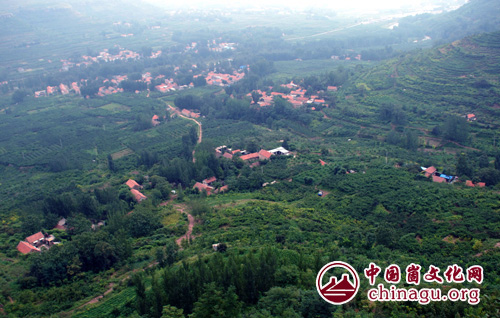 车子北往,离岱崮镇驻地越来越近。这时,晨雾渐渐散去;太阳露出了脸儿。八时许,我们已来到了荷叶崮下的丁家庄村。