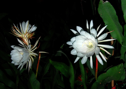 近日,蒙阴县农业局退休干部魏宗湘精心培育八年的昙花接连盛开了十佘朵,浓郁的花香迷漫在庭院内,沁人心脾,吸引了周围邻居前来观赏。(姜怀忠)