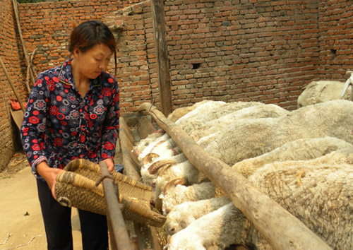 俗话说:“赶鸭子上架”。山东省蒙阴县常路镇小常路村妇女刘娟在庭院里把小尾寒羊赶上“架”喂养,闯出了一条新路子。据刘娟介绍:把羊赶在“架”上喂养好处有三。一是不多占用空间,羊活动量少。二是省工省时还省料,清理粪尿也方便。三是羊得得疾病还少,生长快,出栏早。上半年,刘娟已出栏小尾寒羊10只,还有10多只再过几天将要出栏。每年刘娟在庭院里养羊,收入在1万多元。图为8月26日刘娟在为上架的羊儿添草料。 蒙阴县常路镇党政办:张纪增