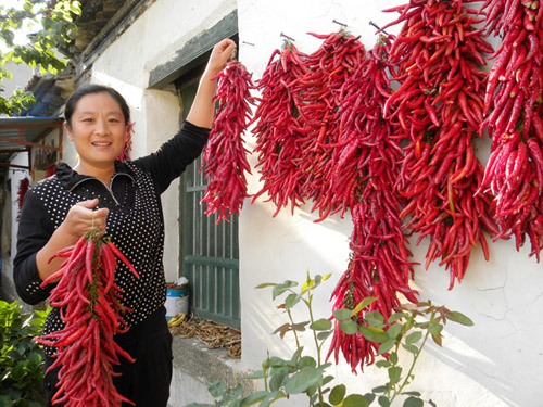 金秋时节,在蒙阴县常路镇公方霞的家里,一串串红灿灿的红辣椒挂满了院子。望着院里串串红辣椒,公方霞心里乐开了花:“俺这是在花生地里间作的红辣椒,一亩地多收入七八百块钱”。像公方霞一样,在这个村利用花生地间作红辣椒的户达30多户。 近年来,这个村积极推广辣椒与花生间作技术,引进了适合本村种植的辣椒新品种“一窝红”,该品种具有易管理、成本低、抗旱抗病虫害、效益高等优势,不但可以规模种植,而且还可以与花生等农作物相间套种,有效的提高了复种指数,增加了农民收入。 蒙阴县常路镇党政办:张纪增