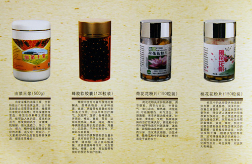 油菜王浆、蜂胶软胶囊、荷花花粉片、桃花花粉片