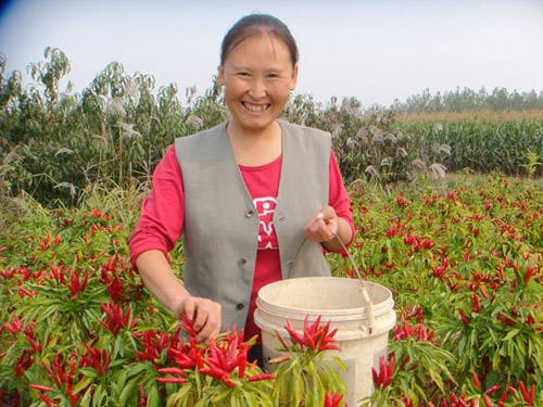 眼下正值辣椒成熟的季节,在蒙阴县常路镇山里村村民禹燕的辣椒地里,一串串辣椒犹如一朵朵盛开的花朵,煞是喜人,禹燕和家人正在高兴地采摘辣椒。近年来,这个镇引进了适合本镇种植的辣椒新品种“一窝红”,该品种具有易管理、成本低、抗旱抗病虫害、效益高等优势,不但可以规模种植,而且还可以与花生、葱等农作物相间套种。在管理中,这个镇积极引导农民科学使用高效、低毒、低残留农药和生物有机化肥,提高了辣椒的质量。今年,全镇种植的100亩“一窝红” 辣椒喜获丰收,亩产达1000多斤,亩收入在3500元以上。