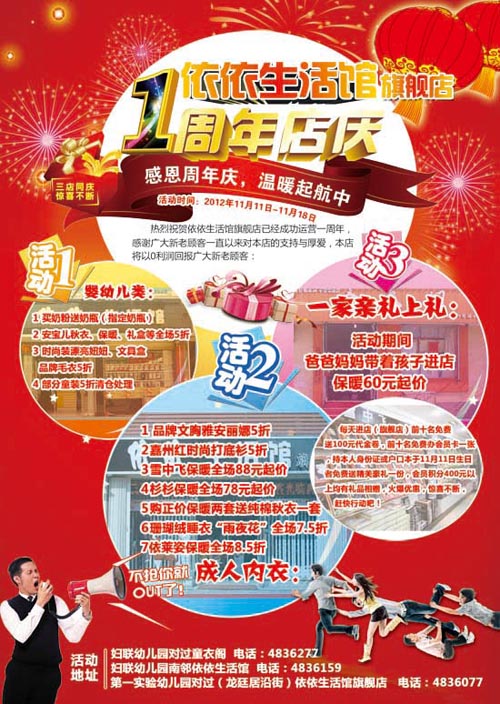 ◆ 依依生活馆旗舰店地址:兴蒙路龙延居沿街(第一实验幼儿园对过)电话:4836077